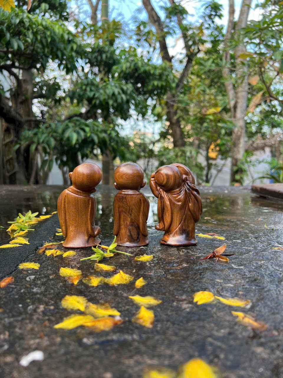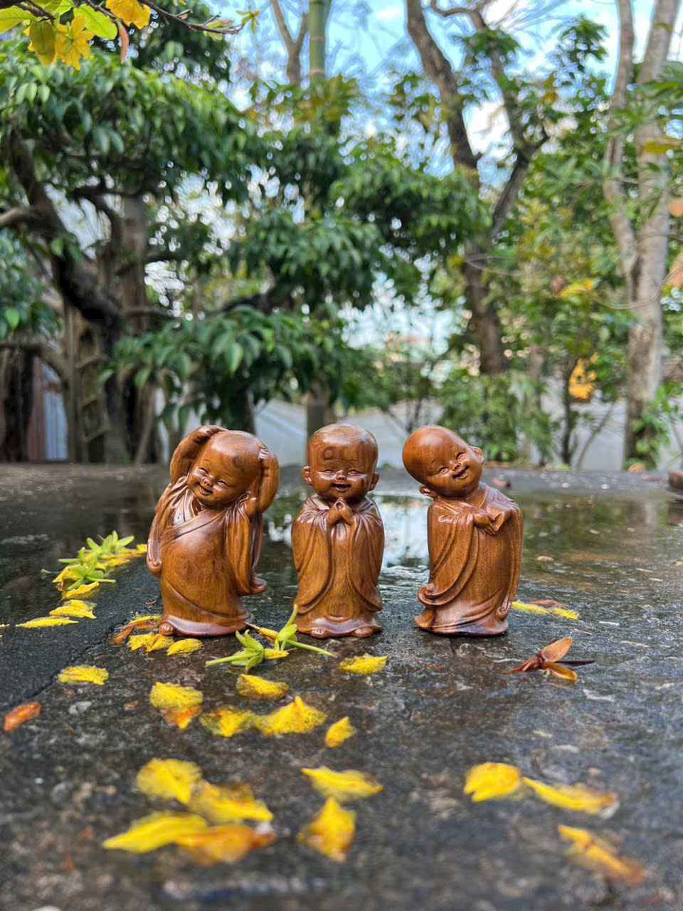Bộ Ba Phật Tử Gỗ Bách Xanh – Nhỏ Gọn Mà Linh Khí