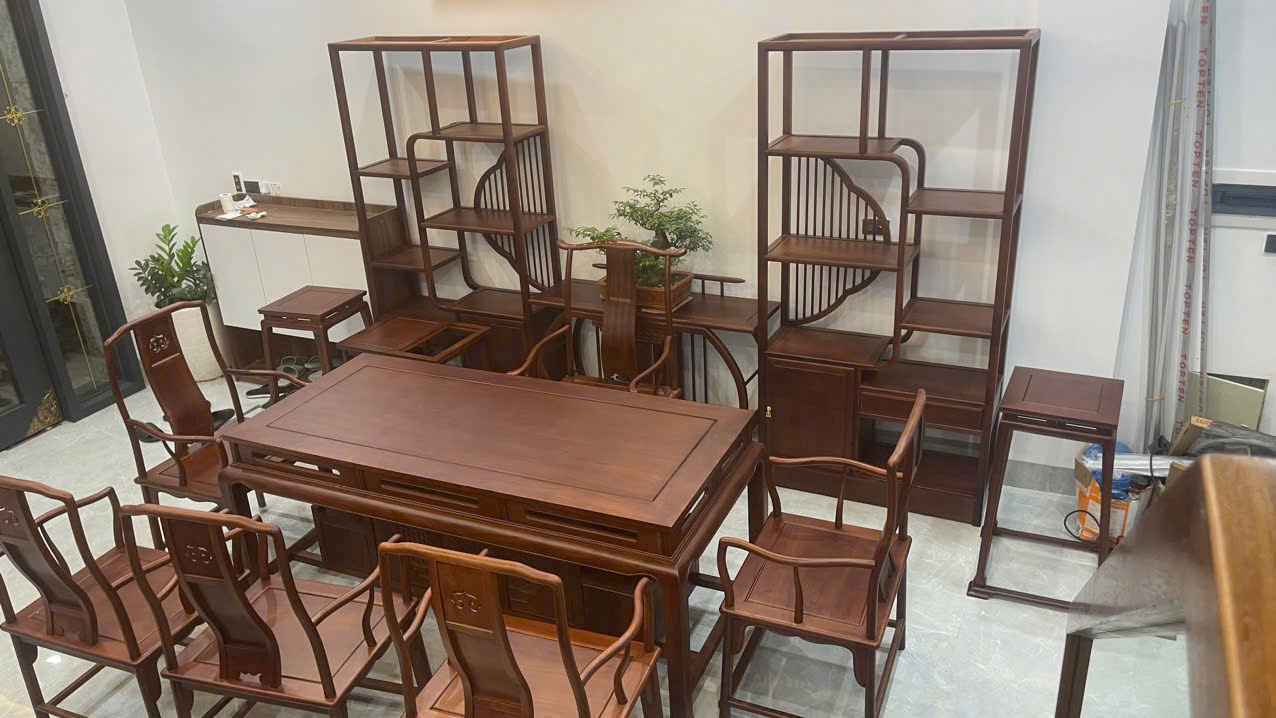 Bộ Bàn Trà Gỗ Hương Đá Dài 180 (cm)