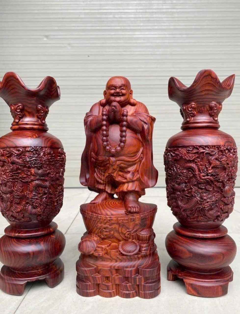 Bộ Di Lặc Và Cặp Bình Phú Quý Gỗ Trắc Cao 30 (cm)