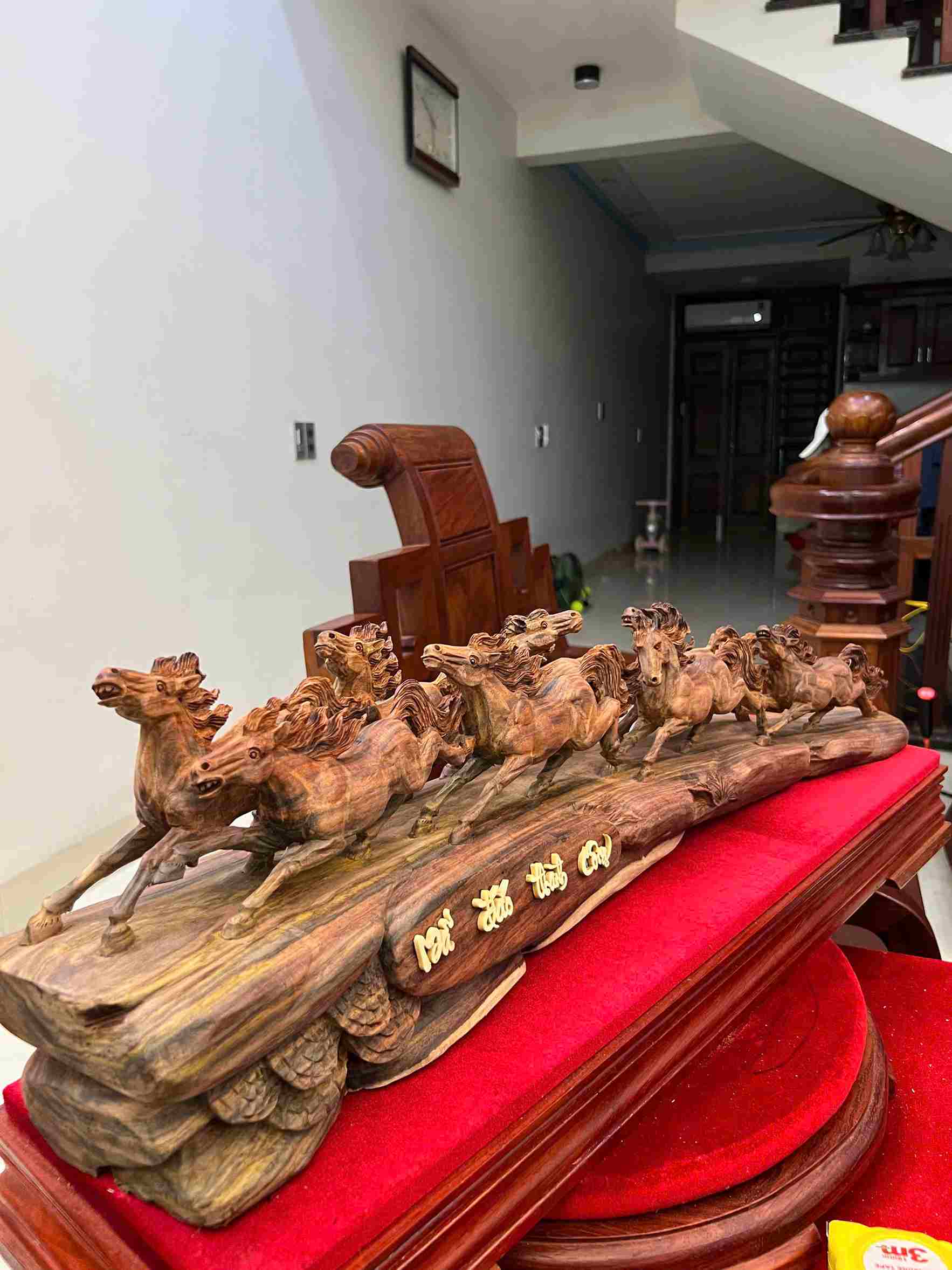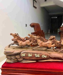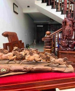 Tượng Bát Mã Gỗ Trắc nổi bật với chất gỗ quý cứng chắc, sắc gỗ trầm sang trọng cùng hệ vân sắc nét, tạo nên tổng thể đẳng cấp và bền đẹp theo thời gian. Hình tượng tám chú ngựa phi nước đại biểu trưng cho sự đoàn kết, sức mạnh và thành công nhanh chóng trong công việc, kinh doanh. Từng chi tiết được chạm khắc tinh xảo, thần thái sống động, mang đến cảm giác chuyển động mạnh mẽ và đầy năng lượng. Khi trưng bày tại phòng khách, phòng làm việc hoặc văn phòng, sản phẩm giúp kích hoạt tài lộc, thúc đẩy thăng tiến và mang lại vận khí hanh thông, thuận lợi.