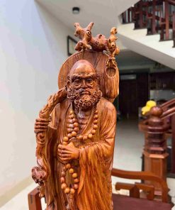 nổi bật với chất gỗ quý, vân gỗ tinh tế cùng sắc gỗ trầm ấm đầy chiều sâu. Tác phẩm được đục tay kỹ lưỡng, từng đường nét sắc sảo thể hiện rõ thần thái uy nghi, ánh mắt thâm trầm và khí chất mạnh mẽ của bậc giác ngộ. Hình tượng Đạt Ma tượng trưng cho trí tuệ, ý chí kiên định và khả năng hóa giải năng lượng xấu. Khi trưng bày tại phòng khách, phòng làm việc hoặc không gian thiền, sản phẩm không chỉ là điểm nhấn nghệ thuật cao cấp mà còn giúp trấn trạch, tăng cường chính khí và mang lại sự an định, sáng suốt cho gia chủ.