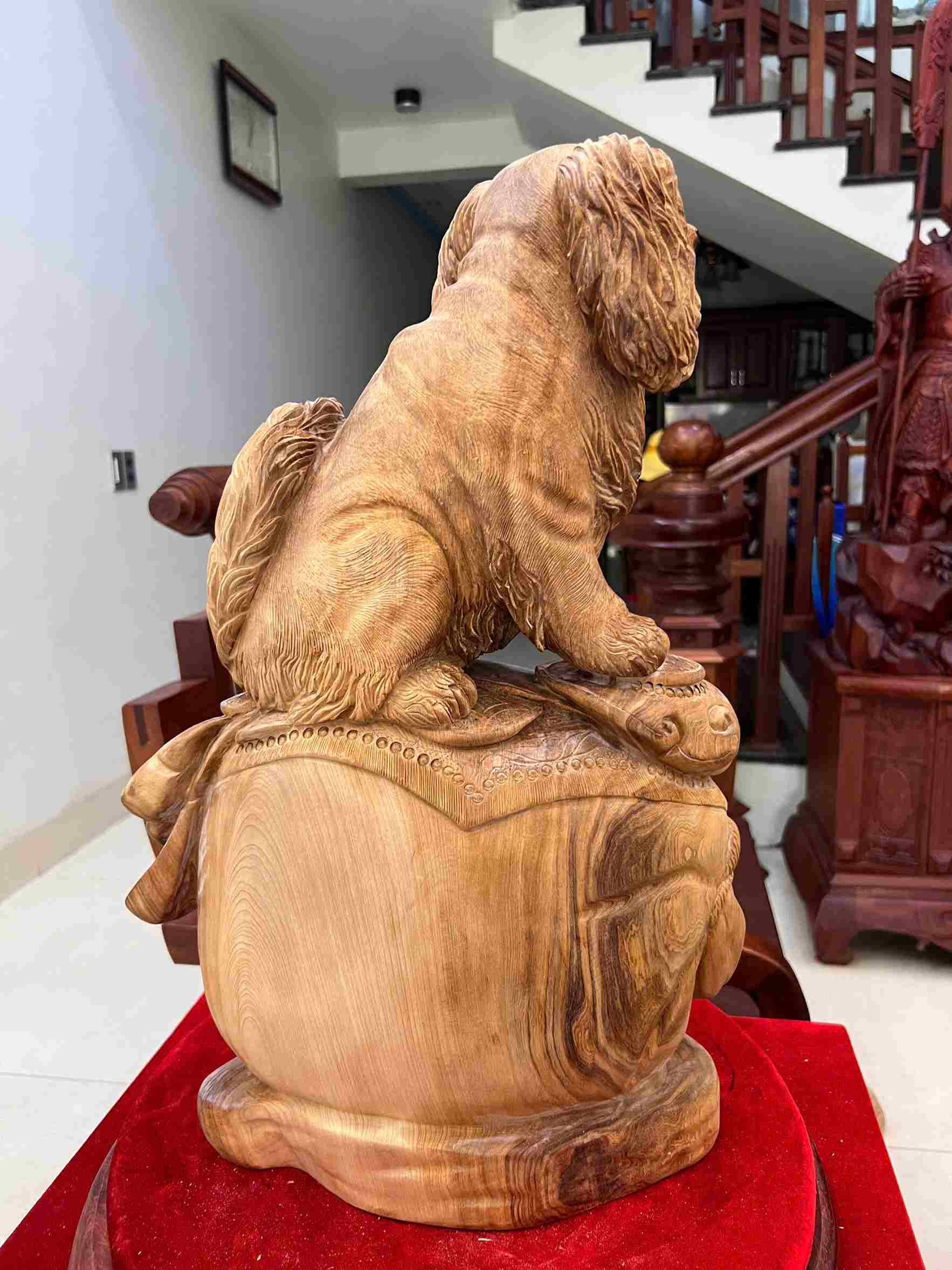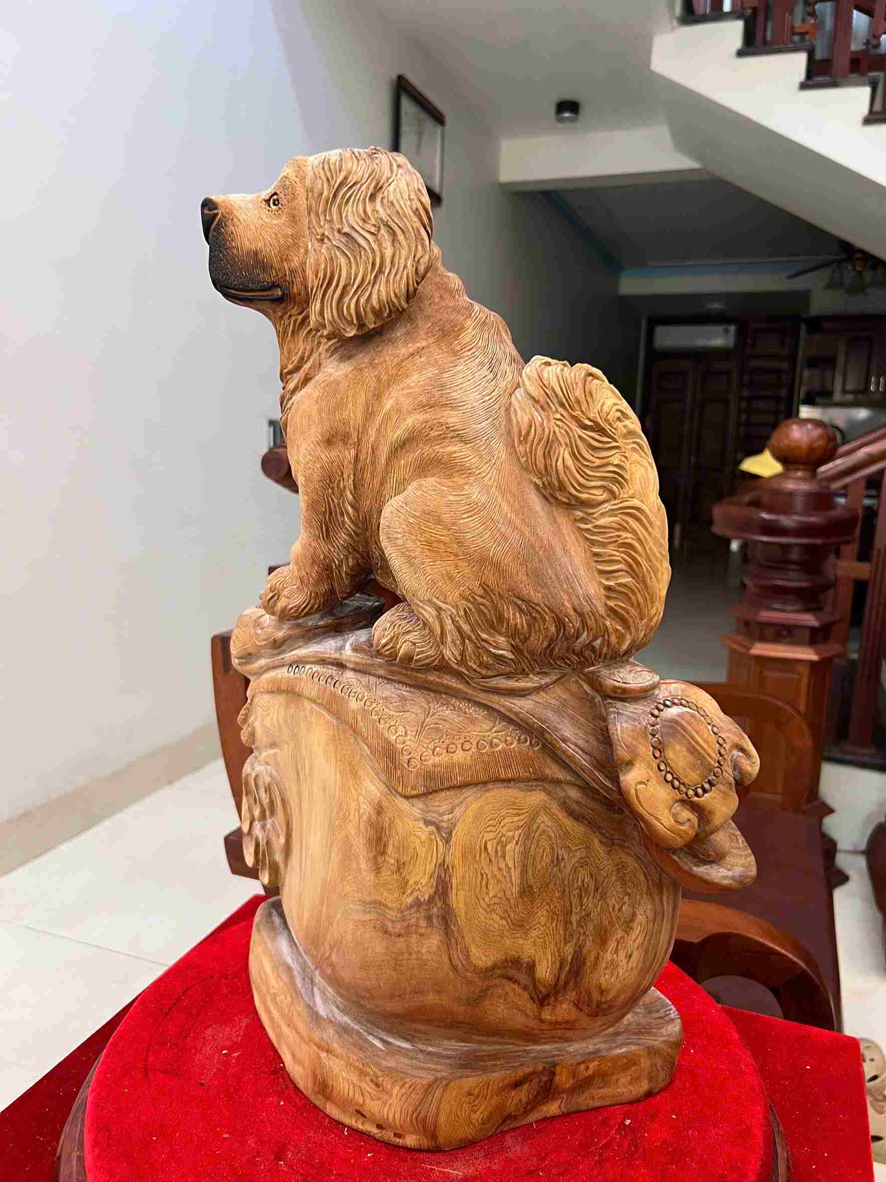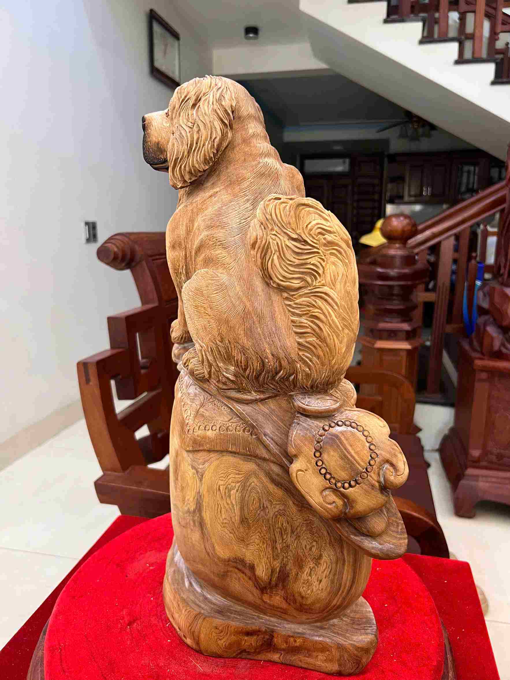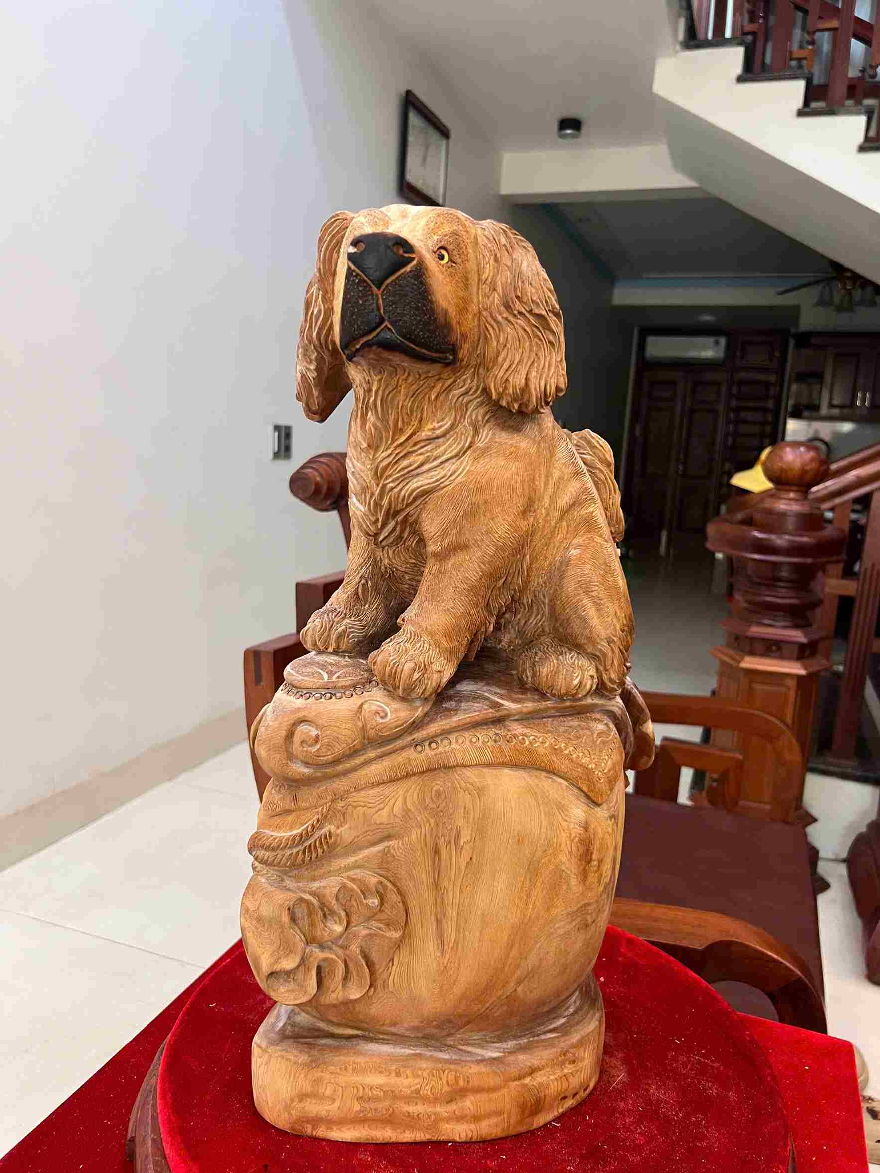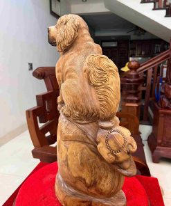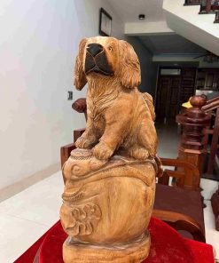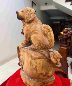 Tượng Cún Ngồi Như Ý Gỗ Ngọc Am Cao 52 (cm)