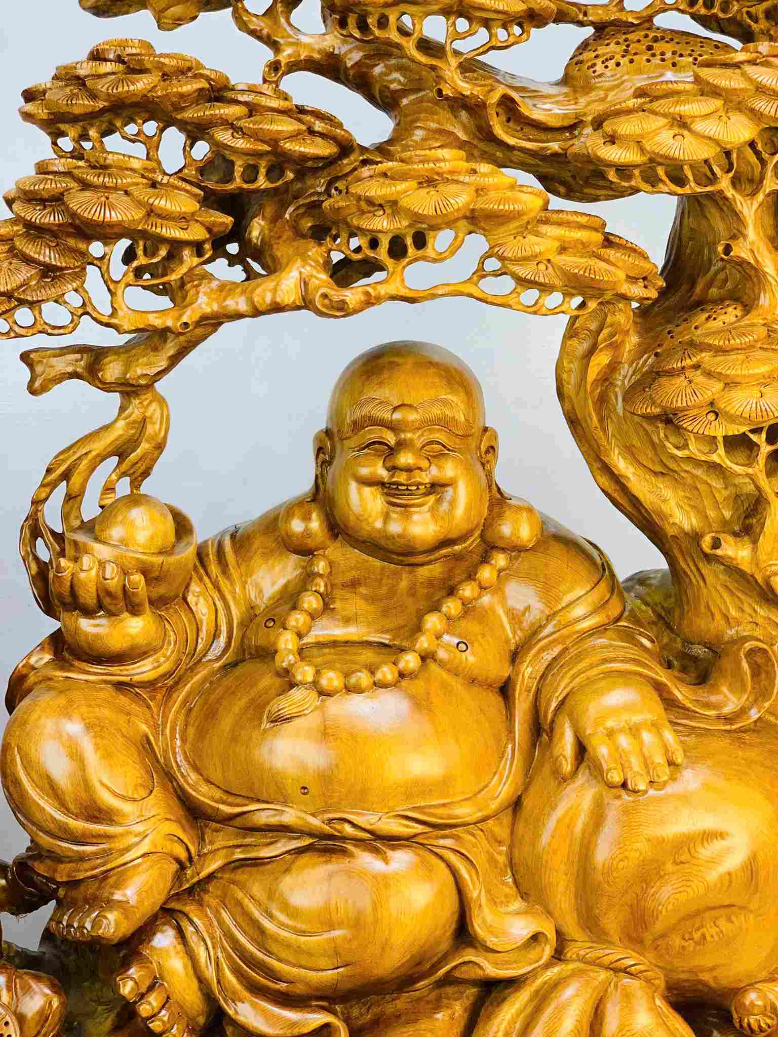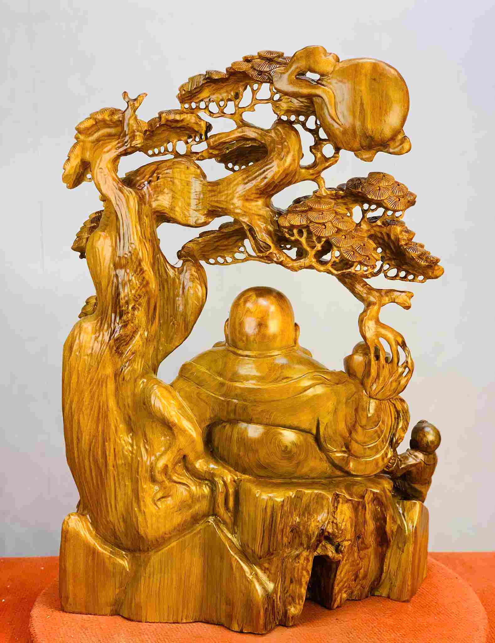 Tượng Di Lặc Nhị Phúc Gỗ Ngọc Am Cao 71 Ngang 55 Sâu 24 (cm)