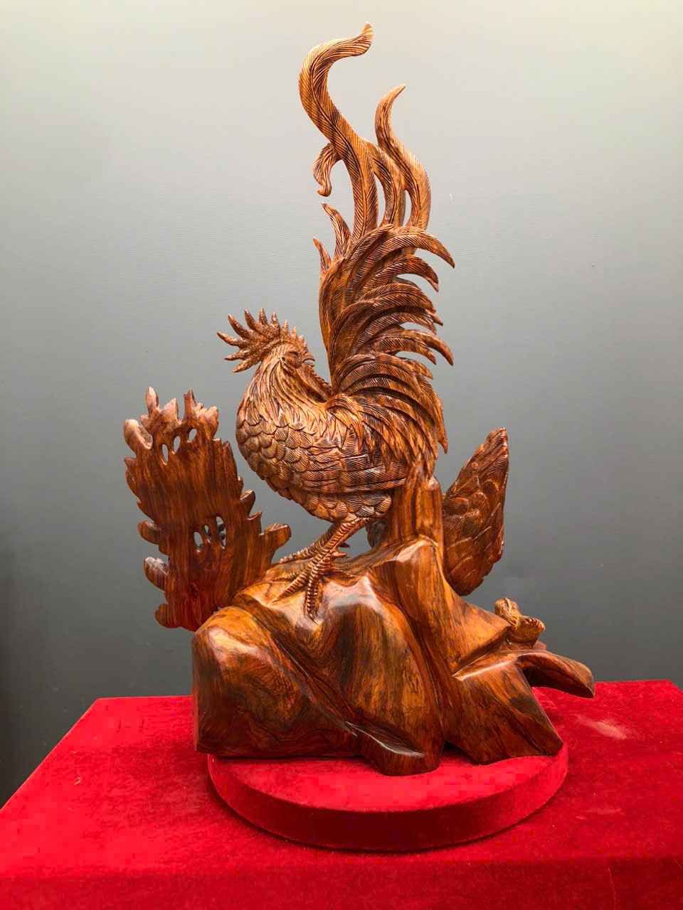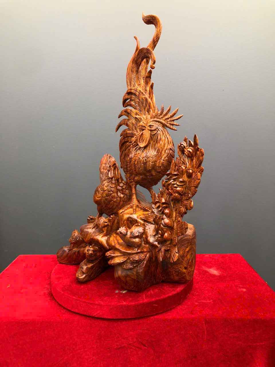Tượng Gia Đình Gà Gỗ Sưa Cao 73 (cm)