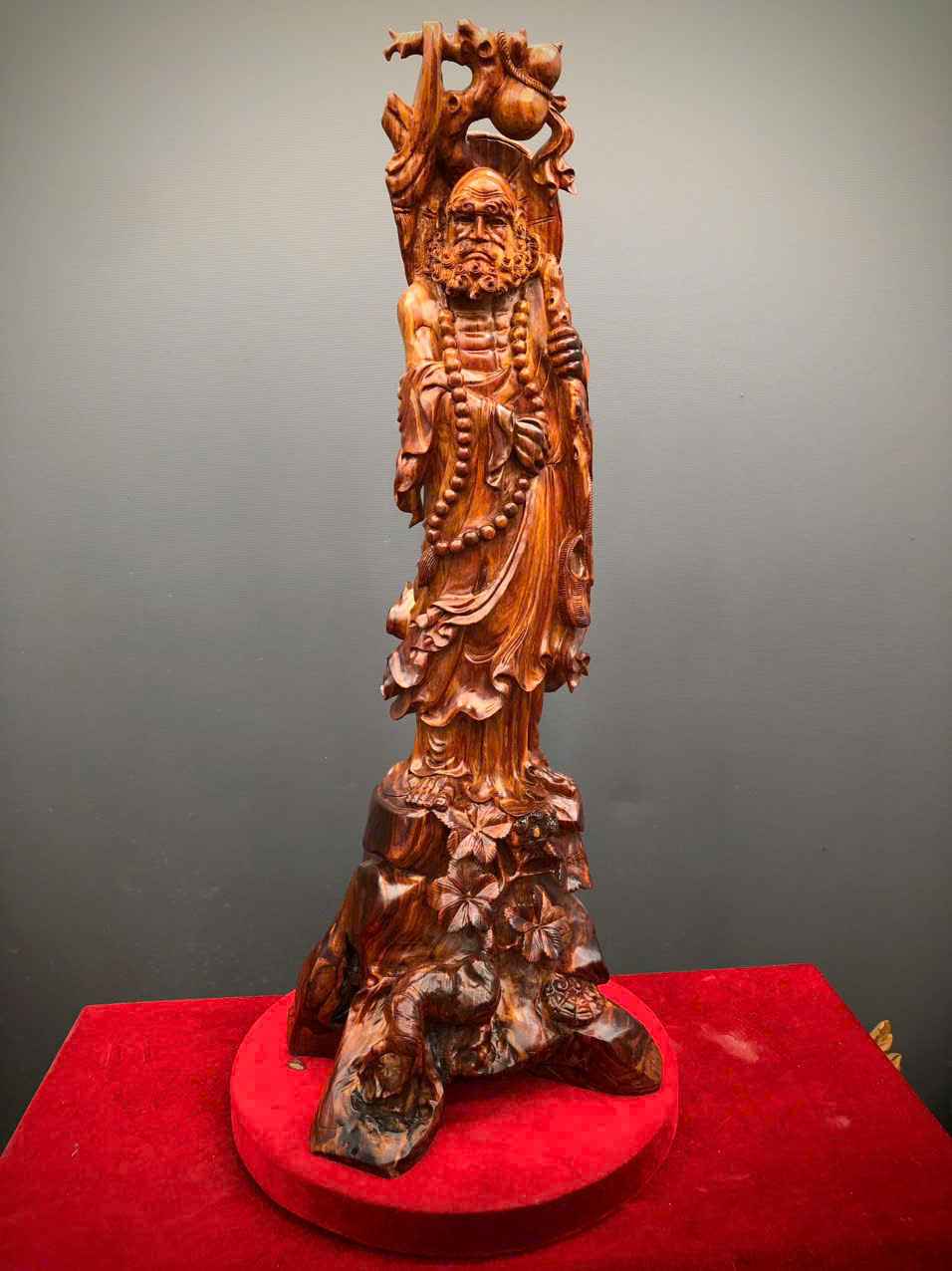 Tượng Ngài Đạt Ma Gỗ Sưa Bắc Đỏ Cao 85 (cm)