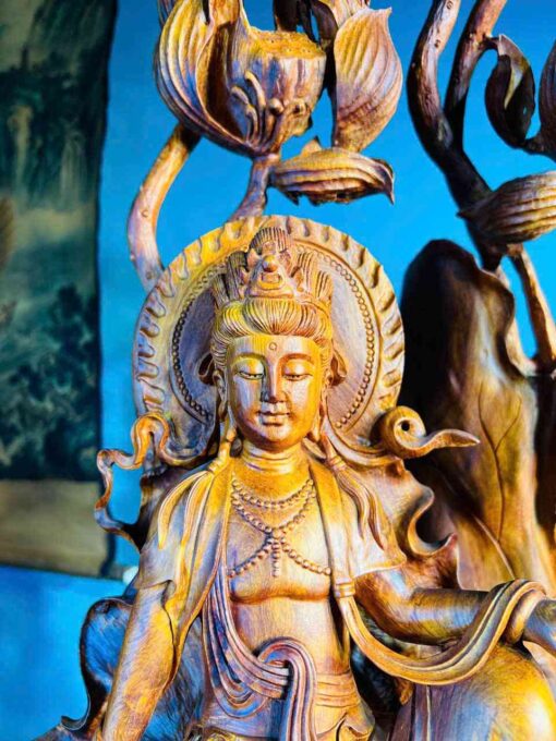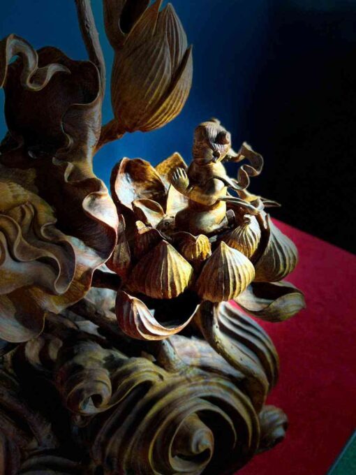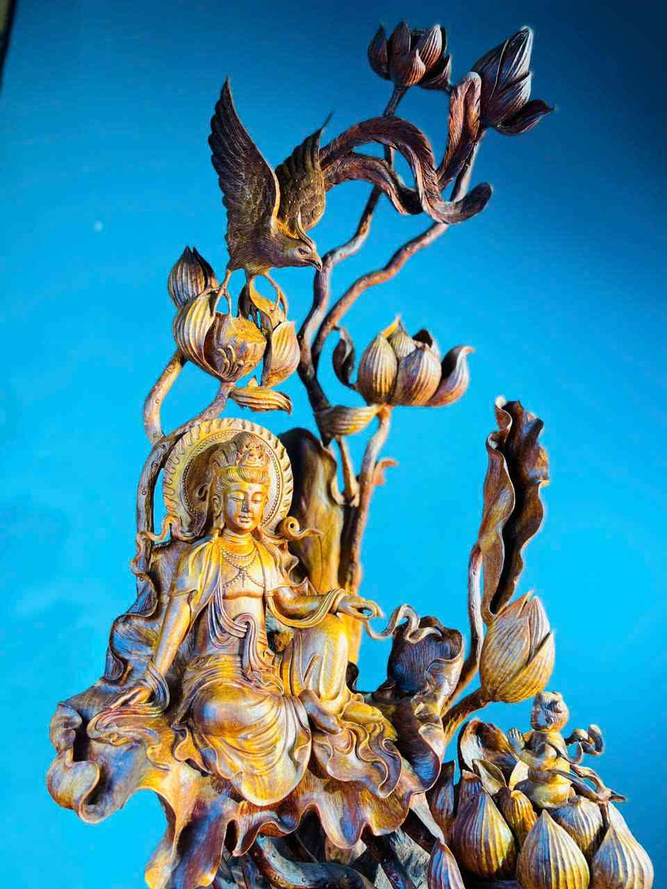 Tượng Nhất Tâm Bái Phật Gỗ Hương Cao 1 Ngang 47 Sâu 47 (cm)