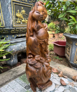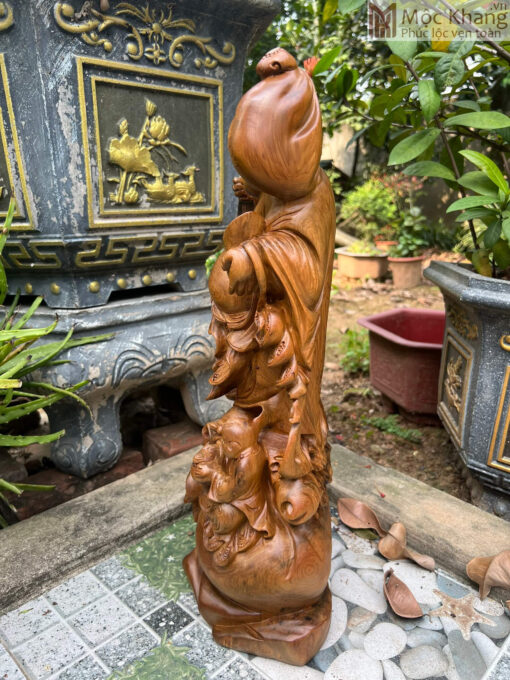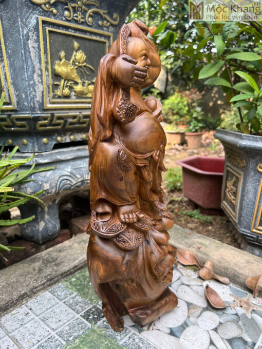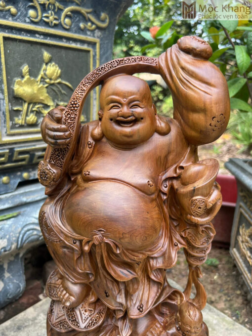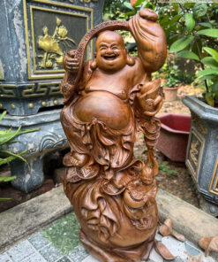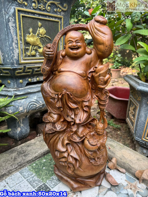 Tượng Phật Di Lặc Gỗ Bách Xanh Cao 50 Ngang 20 Sâu 14 (cm)