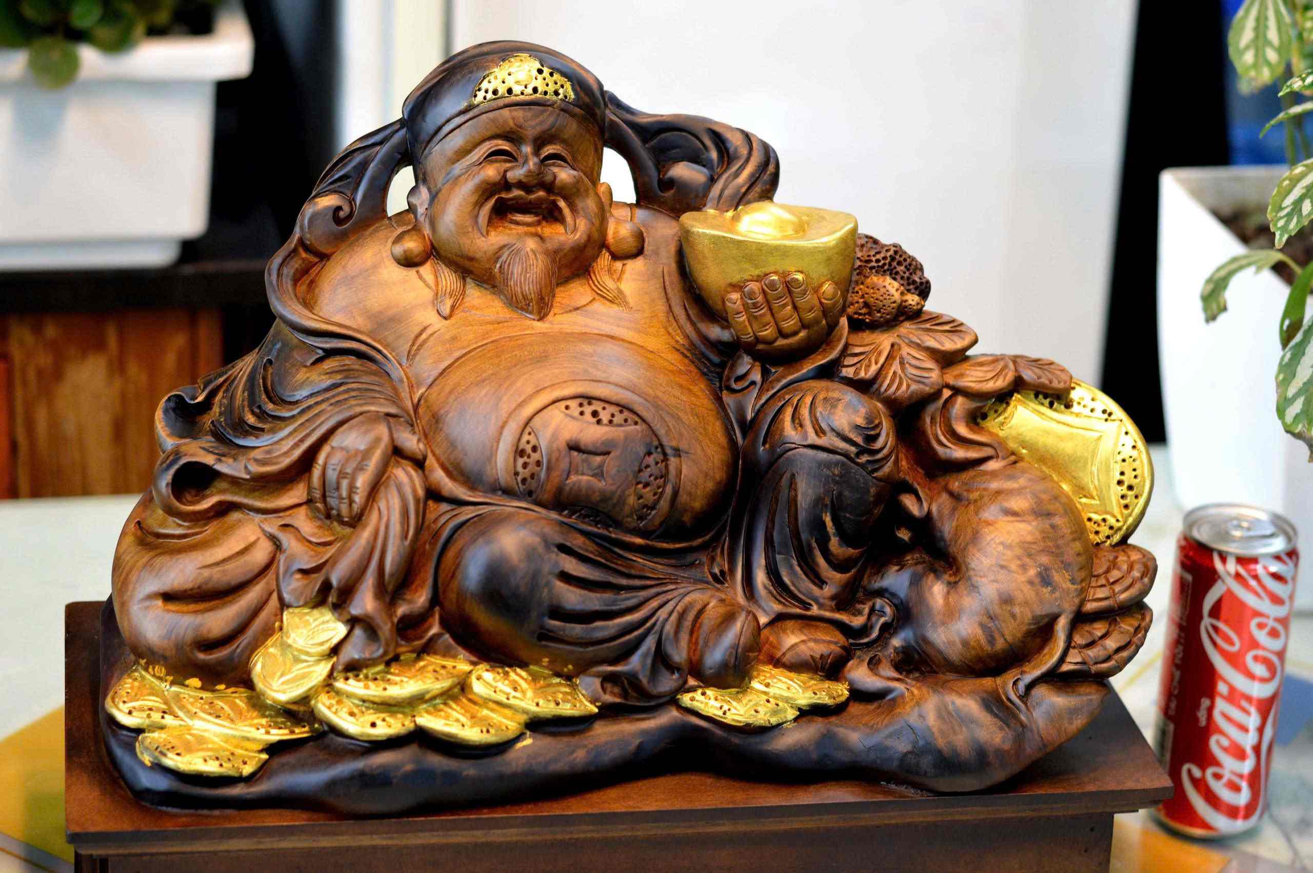 Tượng Thần Tài Gỗ Bách Xanh Cao 35 (cm)